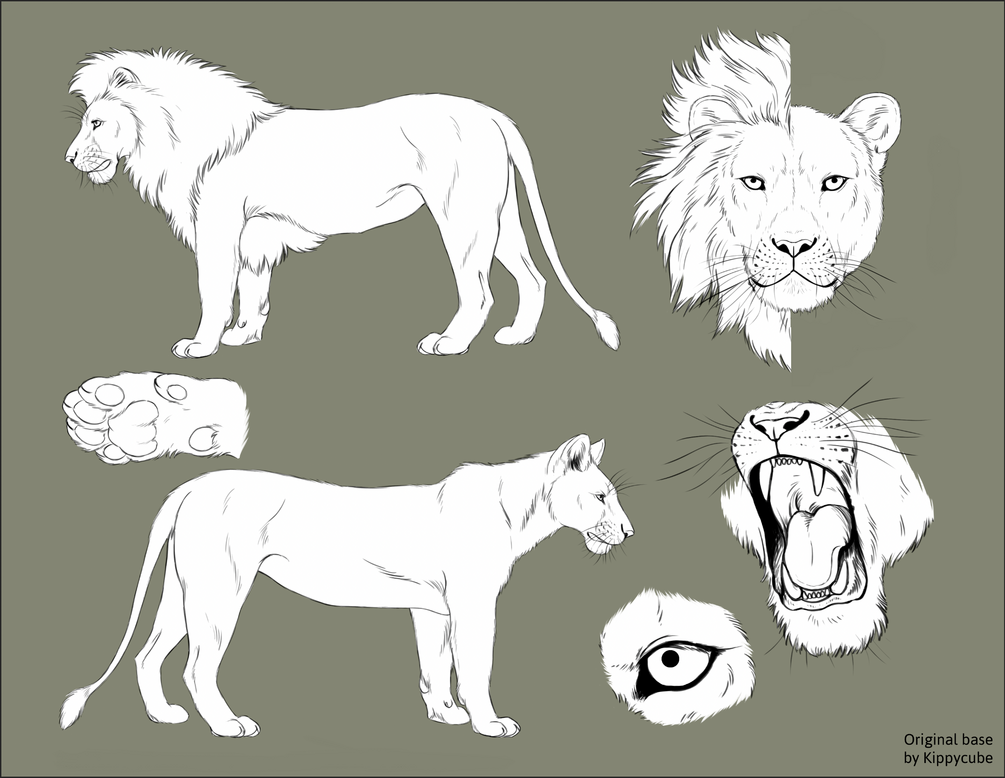 Lion Reference Sheet Base (feral, female & male)